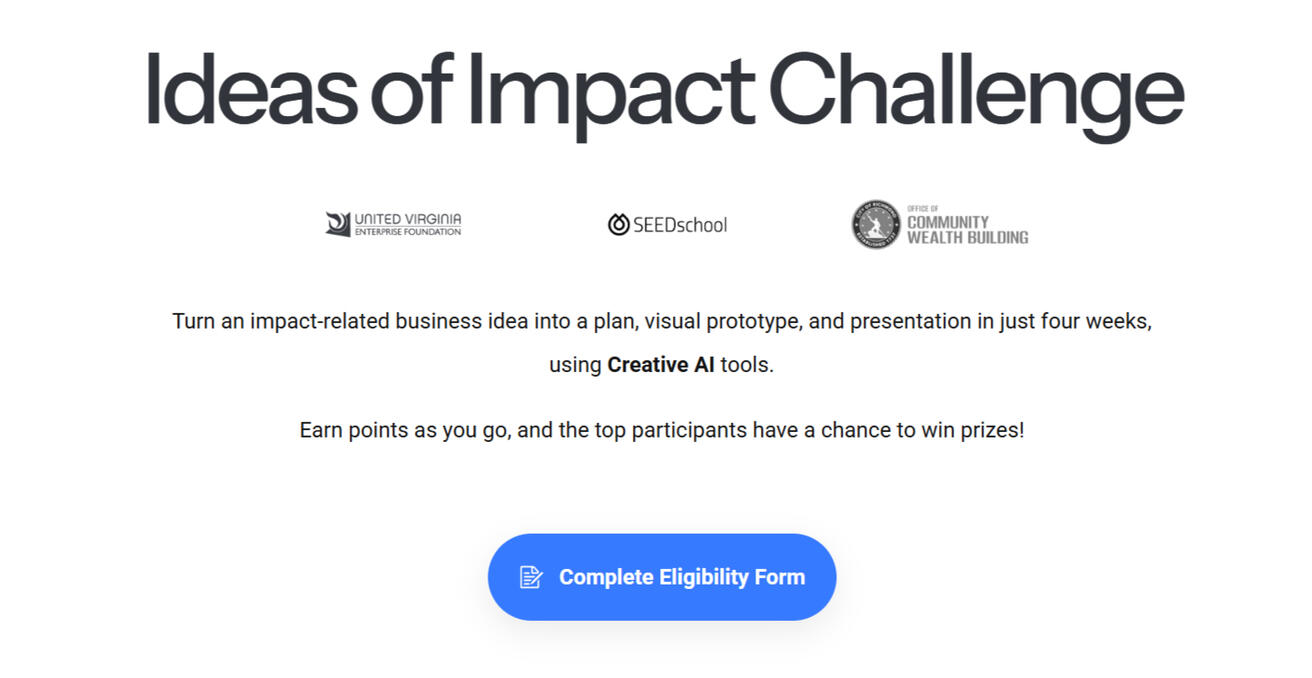 The Ideas of Impact Challenge is a 4-week virtual program that guides participants through turning their impact-driven business ideas into real, tangible projects using AI tools. The program ends with a virtual Demo Day, where participants showcase their work and compete for recognition and rewards.Learn More